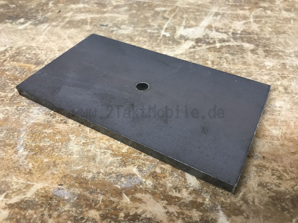 Auf die Platte werden die beiden Hülsen der Seilzugaufnahme zur Hinterachse geschweißt. Die Platte selber wird in Richtung Hinterachse unter den Hauptträger angeschweißt.
